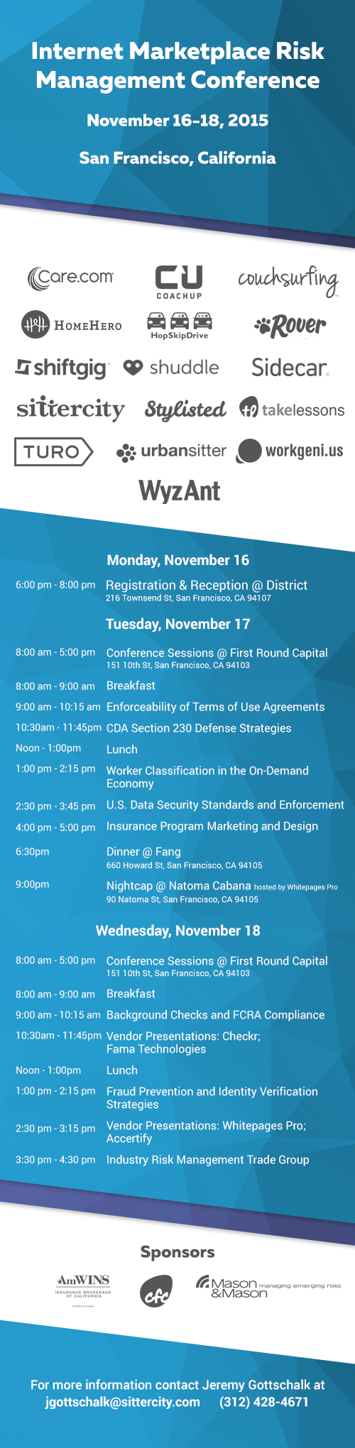 2015 Marketplace Risk Management ConferenceJeremy GottschalkNov 16, 20151 min read 2015 Marketplace Risk Management Conference, San Francisco, CA, November 16-18, 2015. See below for agenda and detail.